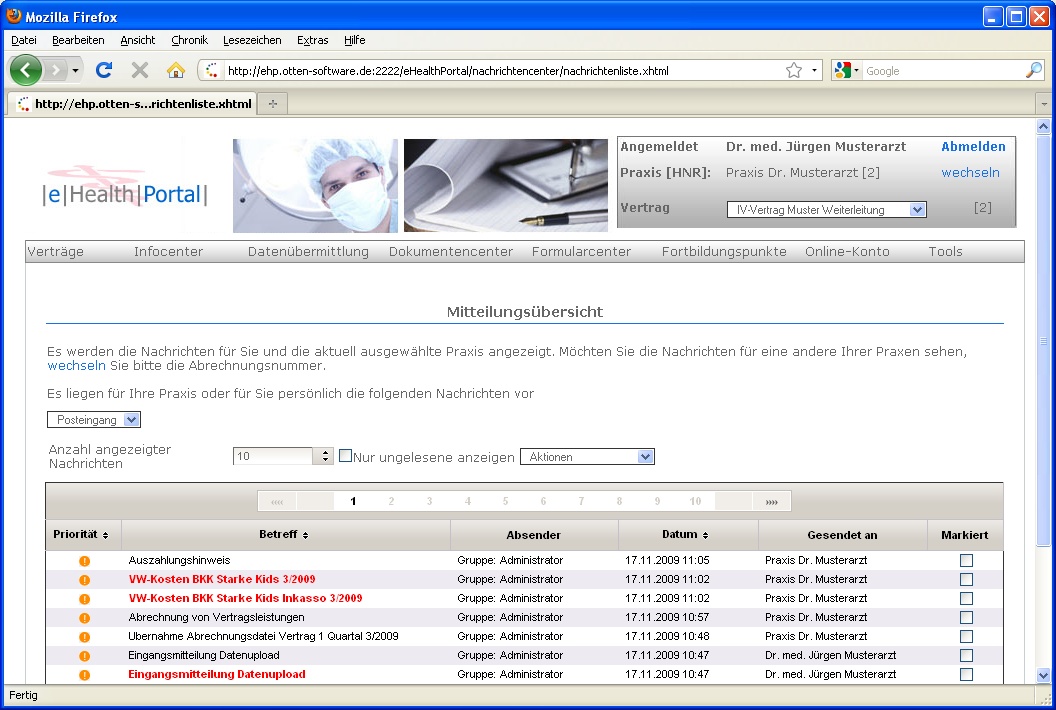 Das Nachrichtencenter realisiert ähnlich einem eMail-Postfach den strukturierten und nachvollziehbaren Informationsaustausch zwischen Portalbetreiber und Kunde. Hier können persönliche Nachrichten revisionssicher eingestellt werden. Der Abruf der einzelnen Nachrichten wird protokolliert, so dass die Zustellung der Informationen nachvollziehbar wird. Gleichzeitig schützt die Sicherheitsumgebung der Portalanwendung die Inhalte der Nachricht. Daher können auch vertrauliche Informationen über das Nachrichtencenter verbreitet werden.